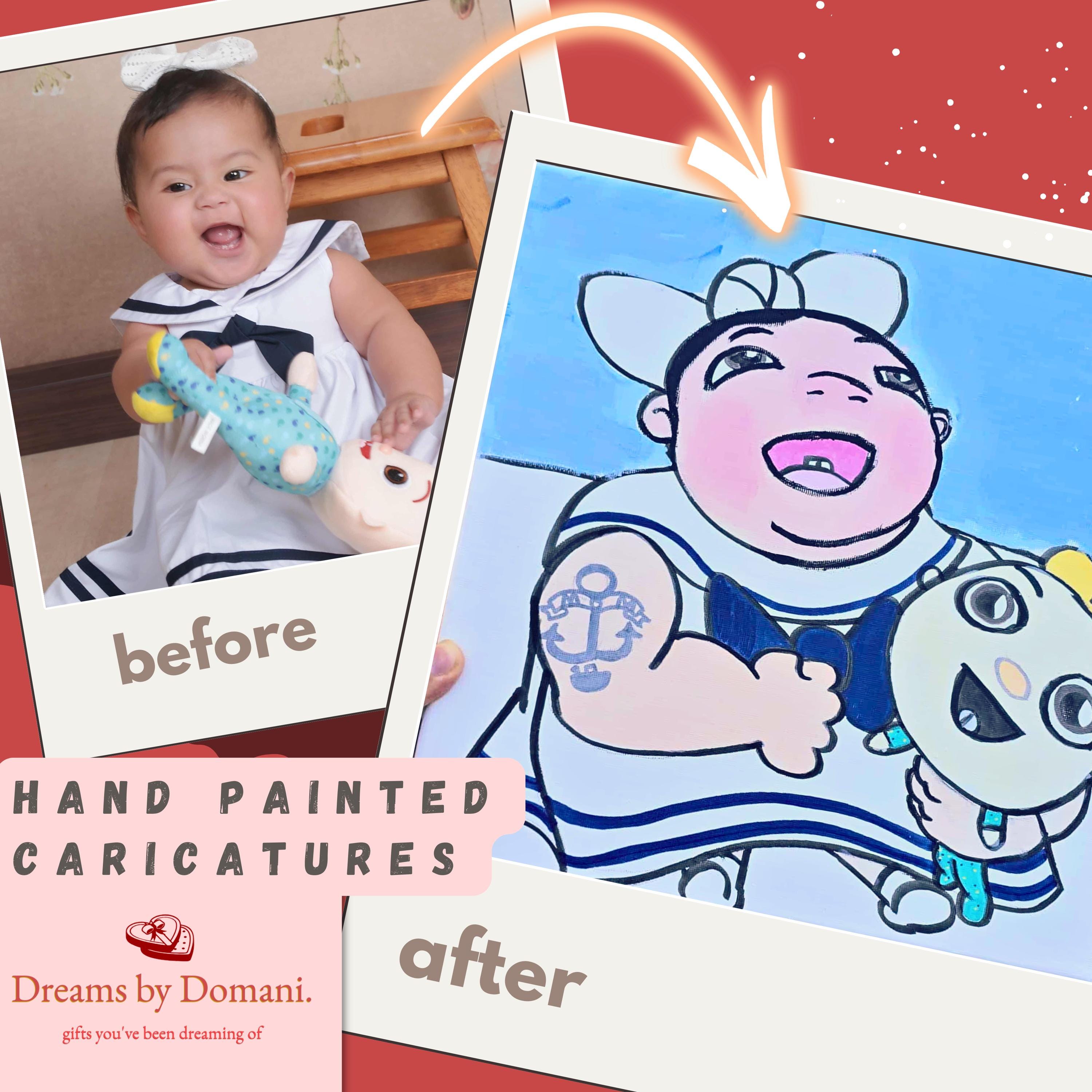 Turn your favorite photo into a one-of-a-kind hand-painted caricature! Perfect for Christmas gifts, birthdays, nursery decor, anniversaries, or as a heartfelt keepsake that captures your loved one’s personality with playful charm and bold color. 💕